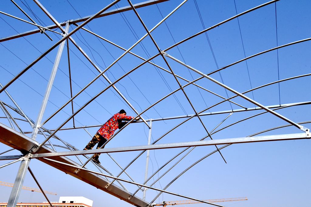 日前走进洛阳市孟津区送庄镇洛阳有限公司瓜果育种基地的智能化大棚建设现场,施工人员正抢抓春节前的有利时机,架梁、焊接、固定、搭建钢结构现代化大棚,进一步完善基础设施,一排排崭新的设施大棚正拔地而起,破土而出,成为冬日里一道亮丽的风景线。